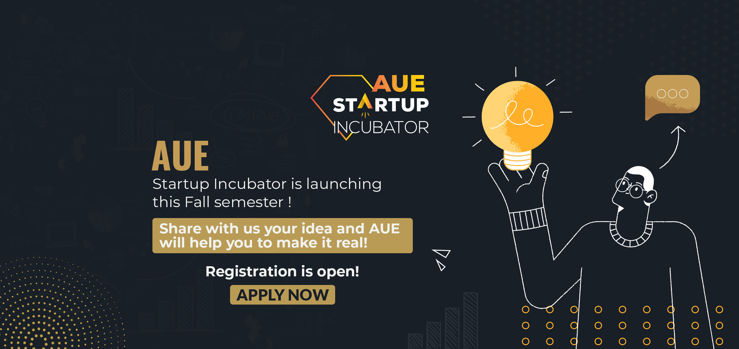 The AUE Startup Incubator program enables the participation of university students, graduates, and postgraduates, especially as it focuses on tools, principles and skills required for developing and raising the efficiency of startups to ensure that startups become up-to-date and ready for the future intensified coaching and mentorship process.