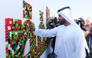 To celebrate the 48th UAE National Day, students, faculty members and parents from GEMS Education, gathered to form the ‘World’s Largest Mosaic Mural Made of Plastic Bottle Caps’ forming the phrase ‘Zayed’s Ambitions Embrace Space’ and set another Guinness World Record.